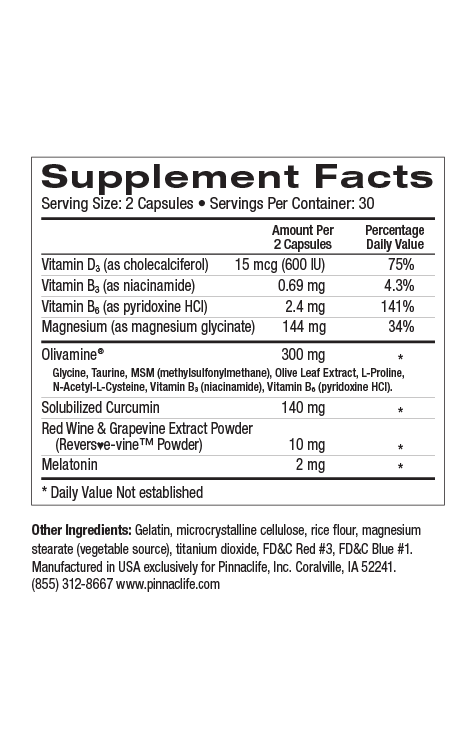 Melatonin, Vitamin D, Magnesium, Solubilized Curcumin, Red Wine/Grapevine Extract Powder